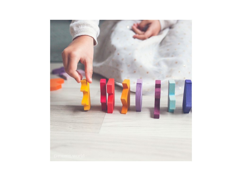 Dřevěná hra hledání dvojic. Využít se však může i na další hry a skvěle doplňuje ostatní Grimms a open ended toys.