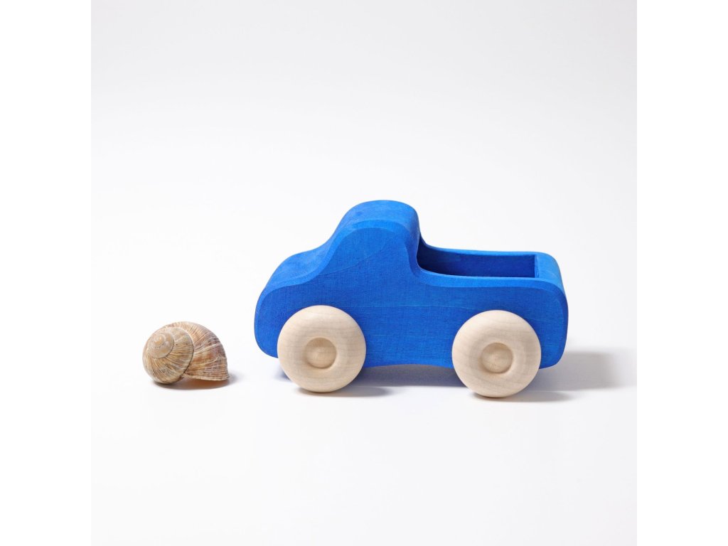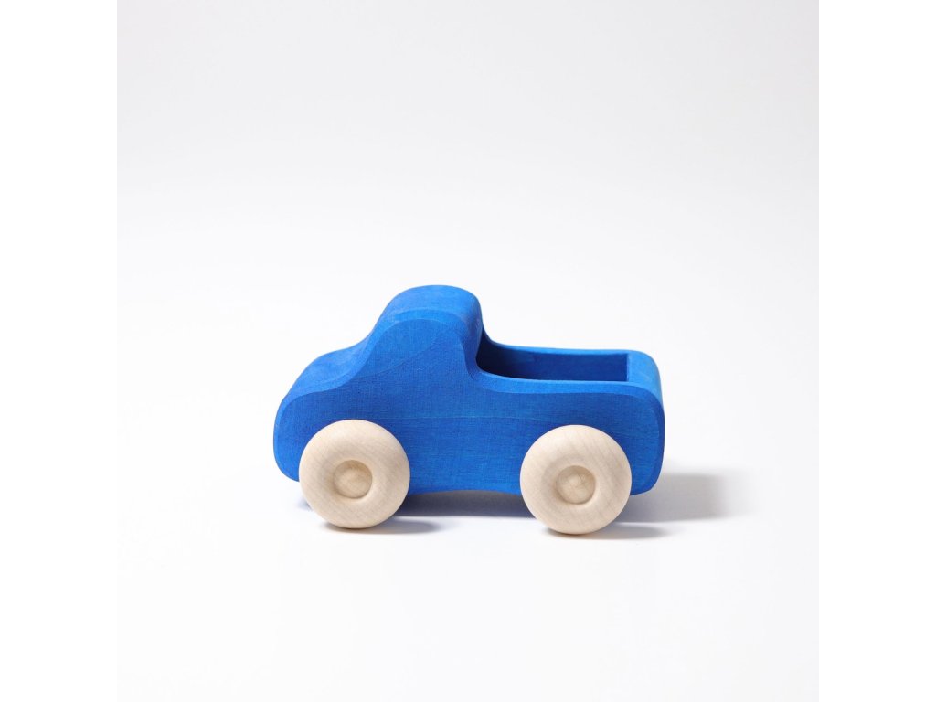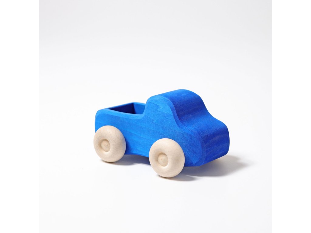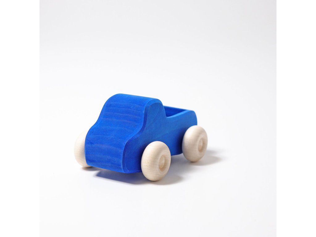 Modré nákladní malé autíčko. Jednoduché autíčko pro první jízdu po pokojíčku. Do autíčka mohou děti posadit řidiče i náklad a vydat se na jízdu přes most i pod bránou. Jízda s nákladem a jeho neustálé vysypávání a nakládání bude patřit mezi první oblíbené činnosti dětí. Poté si mohou postavit i složitější dráhy a slalomy. Autíčko se vydá na cestu po pokojíčku a hra s ním bude stále bohatší a zábavnější. Autíčko je vhodné pro děti od 1 roku.