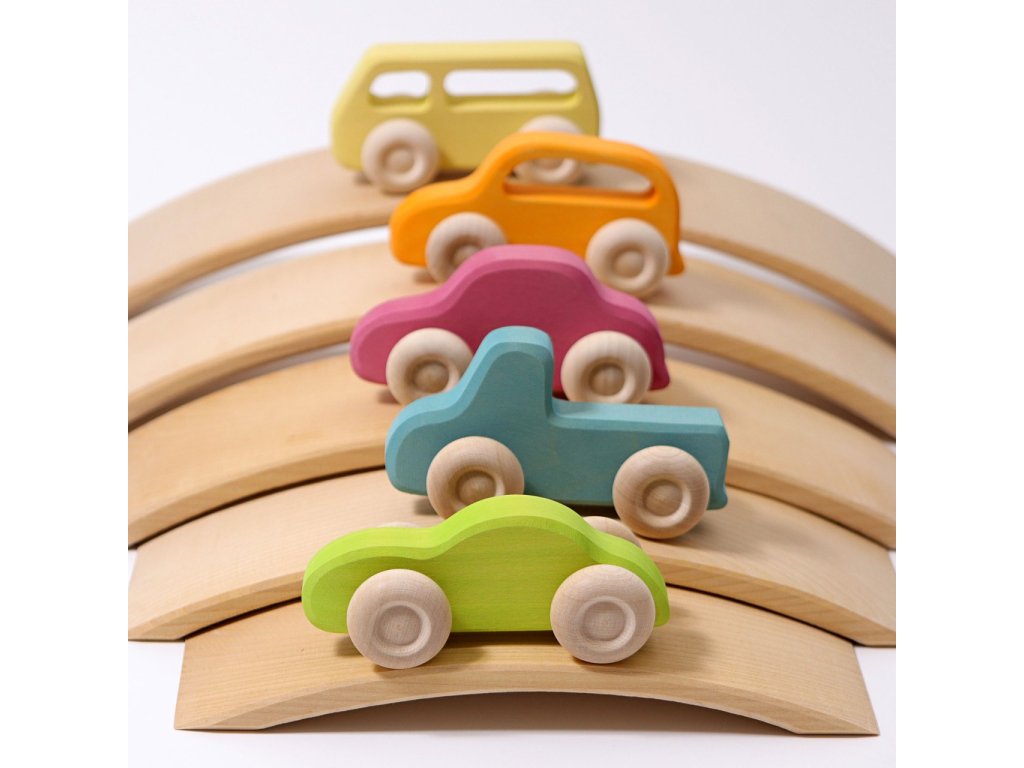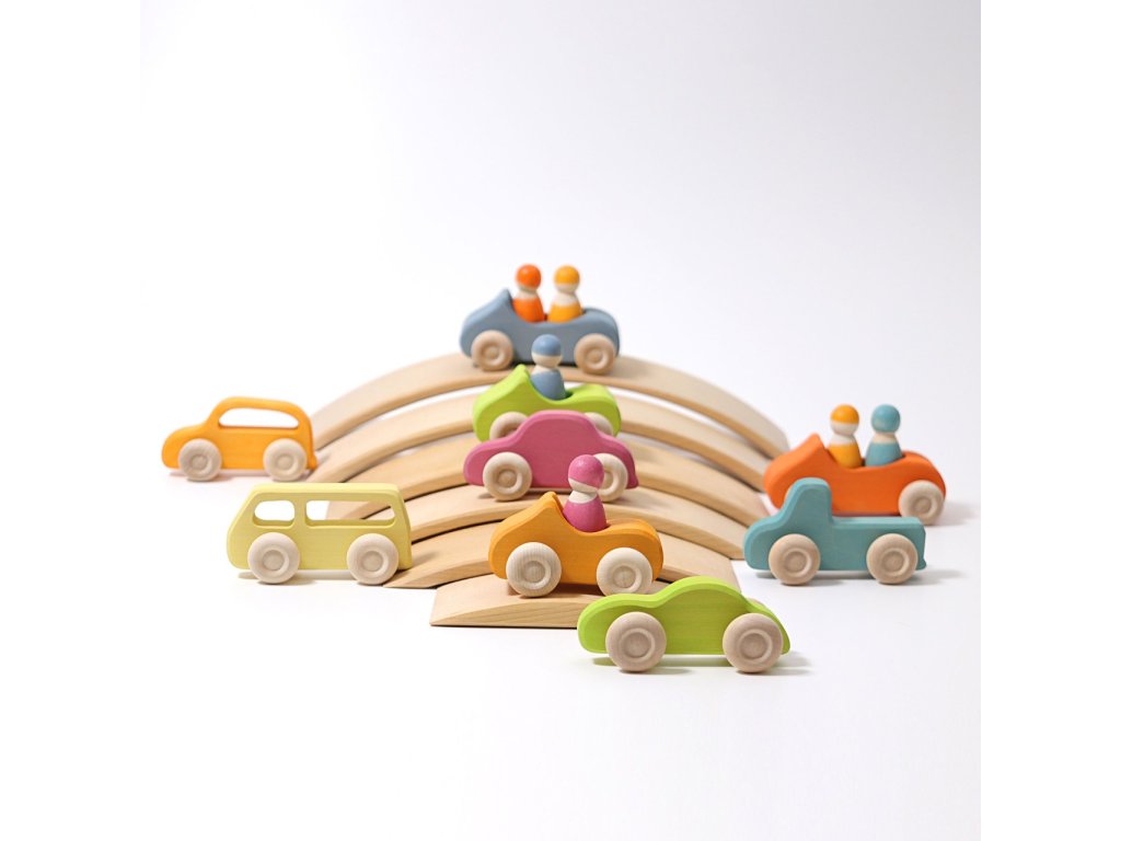 Ať už jde o sportovní vůz, pick-up, dodávku, autobus nebo limuzínu, tato štíhlá klasická dřevěná auta pohodlně převezou cestují po úzkých mostech (10684, 10686) a jsou perfektně dimenzována pro snadné uchopení do ručiček malých dětí.