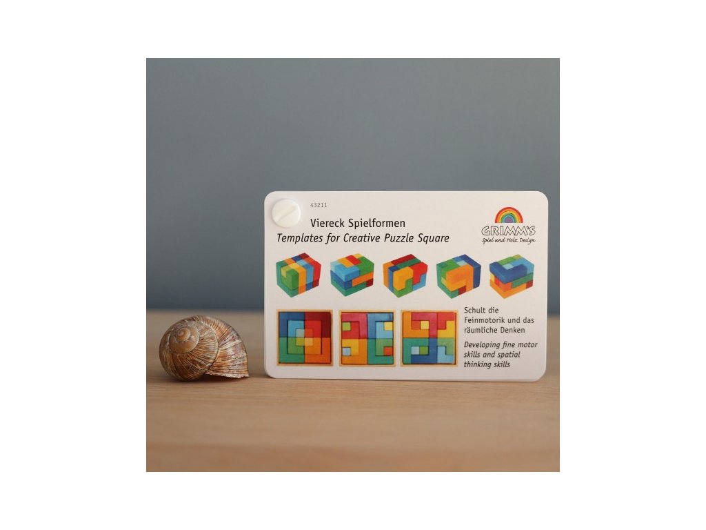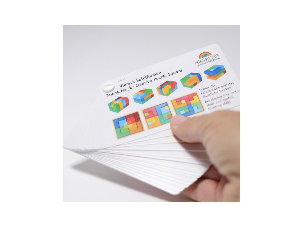 Předloha pro dřevěné puzzle čtverec. Knížečka s 20 různými obrázky a úkoly pro skládání dřevěného hlavolamu Grimms Dřevěné puzzle.