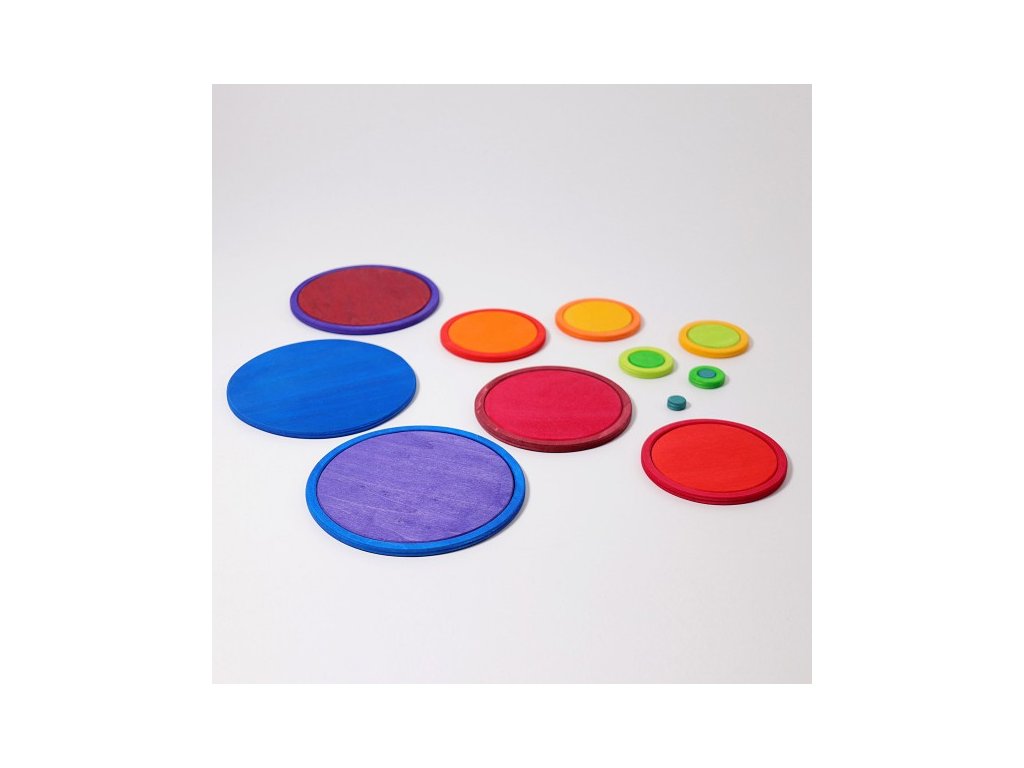 Barevné kruhy a kola, celkem tedy 20 dílů, jsou určeny nejen ke stavění a kreativitě, ale jsou vhodné i pro učení počítání. Společně s čísly, stupňovitými kostkami, korálkovými schody a dalšími matematickými pomůckami tvoří barevně shodný systém.