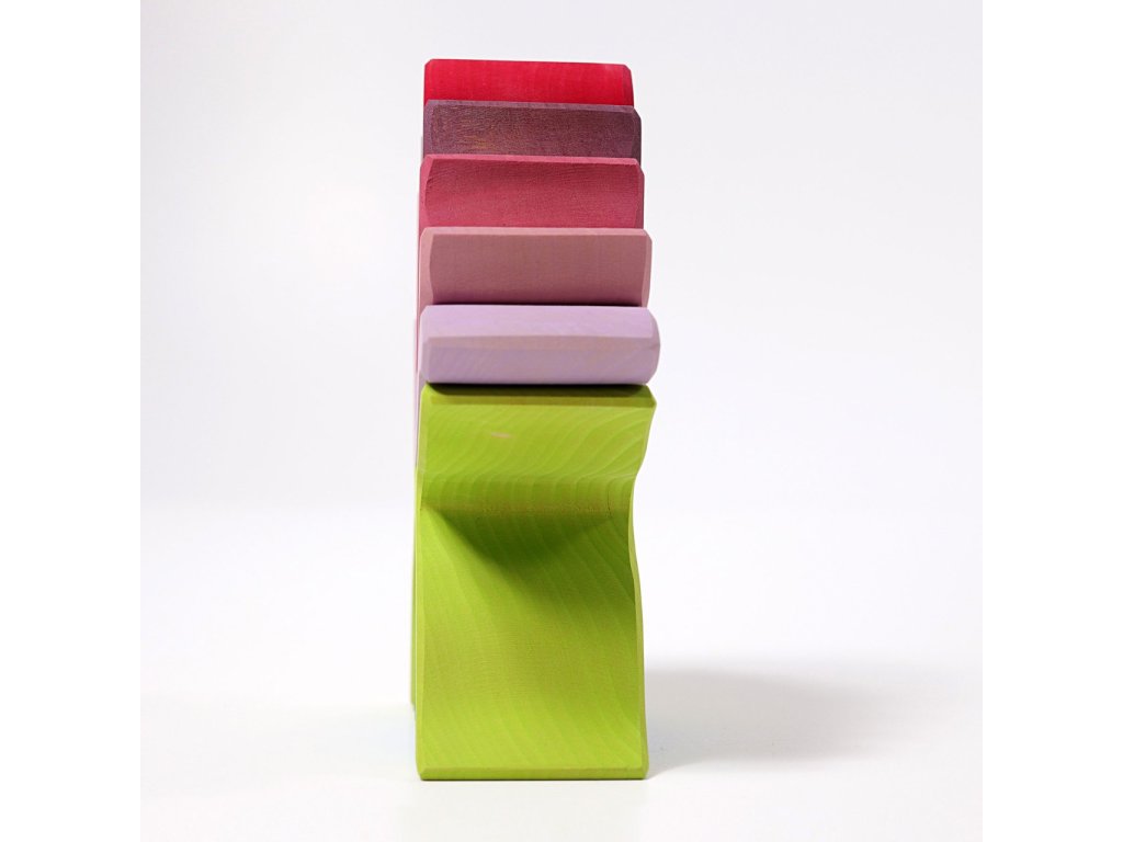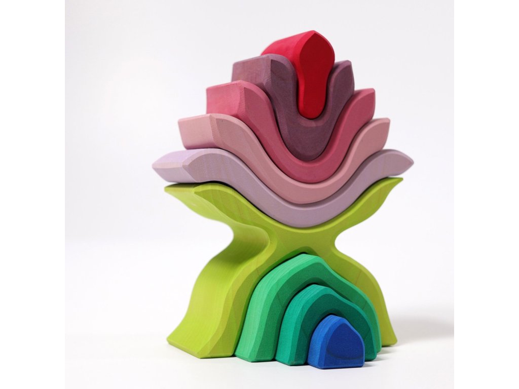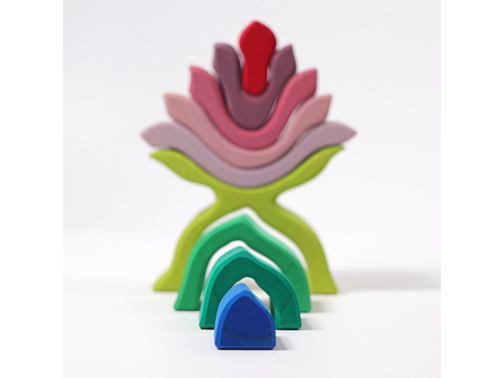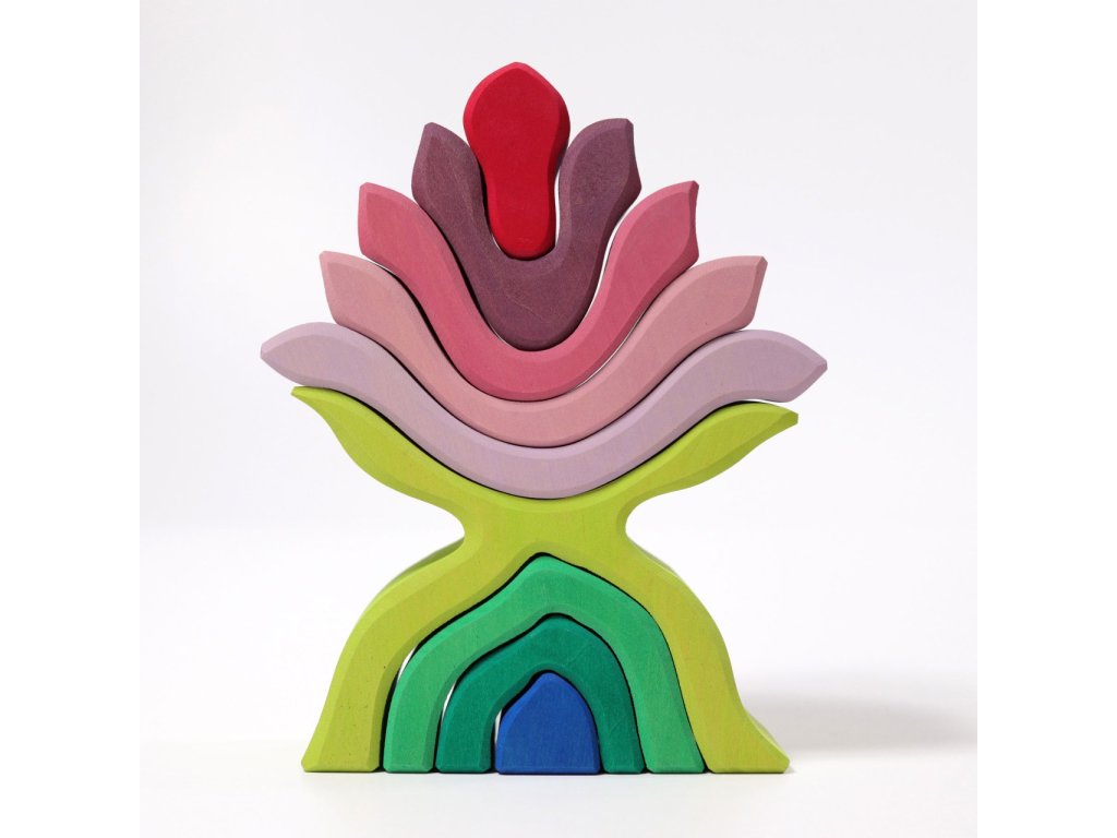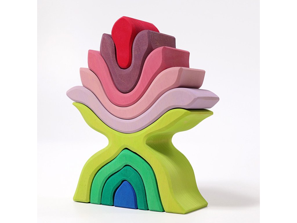 Hledáte hračku pro děti okolo jednoho roku? Balanční stavby, věže a různé pyramidy jsou tou správnou a vhodnou hračkou pro tento věk. Malé děti objevují nové, skládají, třídí, nasouvají, přeskládávají, řadí jednotlivé dílky – to je jejich nejoblíbenější činnost. A když hračka nabízí dítěti široké možnosti využití, bude je doprovázet dlouhou dobu. Z dílků kytičky je možné postavit domečky pro víly, mosty, skalní útesy, slalomy. Hračky Grimm's jsou úžasně barevné, děti se brzy naučí barvičky pojmenovat. Jednotlivé dílky těchto hraček jsou dostatečně silné, aby je děti mohly využívat i jako stavební kostky. Hračky Grimm's jsou vyrobeny z evropských dřevin, jsou ošetřeny ekologickými barvami a přírodním olejem, takže příjemně voní. Dřevěné hračky Grimm's navíc vynikají svoji neobyčejně krásnou, ladivou a zářivou barevností.