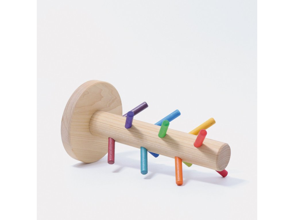Zábavná hra na třídění s 12 duhovými hmoždinkami. Perfektní úložiště pro 24 Grimms barevných stavebních kroužků (10164).