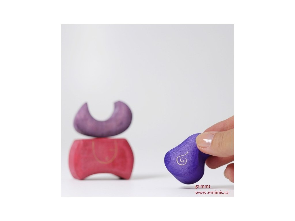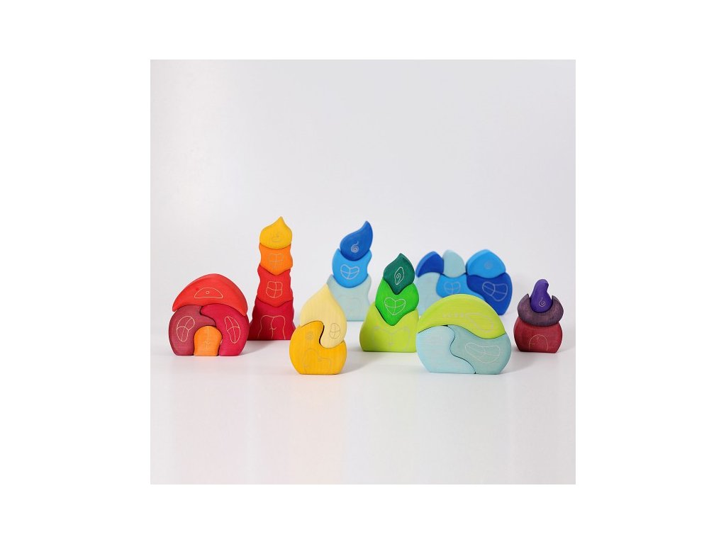 Stavebnice firmy Grimm's se vyznačují vysokou kvalitou, jedinečným designem hraček a úžasným barevným provedením využívajícím spektrálních barev různých intenzit a odstínů. Pro rodiče a děti je důležité, že jsou hračky Grimm's vyrobeny z nezávadných materiálů, evropských dřevin a jsou kvalitně opracovány. Dřevěné hračky jsou tak ošetřeny směsí oleje a vosku a proto krásně voní. Dětem poskytují tyto netradiční hračky a stavebnice neomezený prostor pro hraní plné fantazie, jsou příjemné na omak, dobře se drží v rukou a nekloužou, když se jednotlivé kostky staví na sebe. Nejen tvary kostek samotných, ale právě i barevné provedení tak pomáhají formovat výtvarný projev dětí a upevňovat jejich estetické cítění.