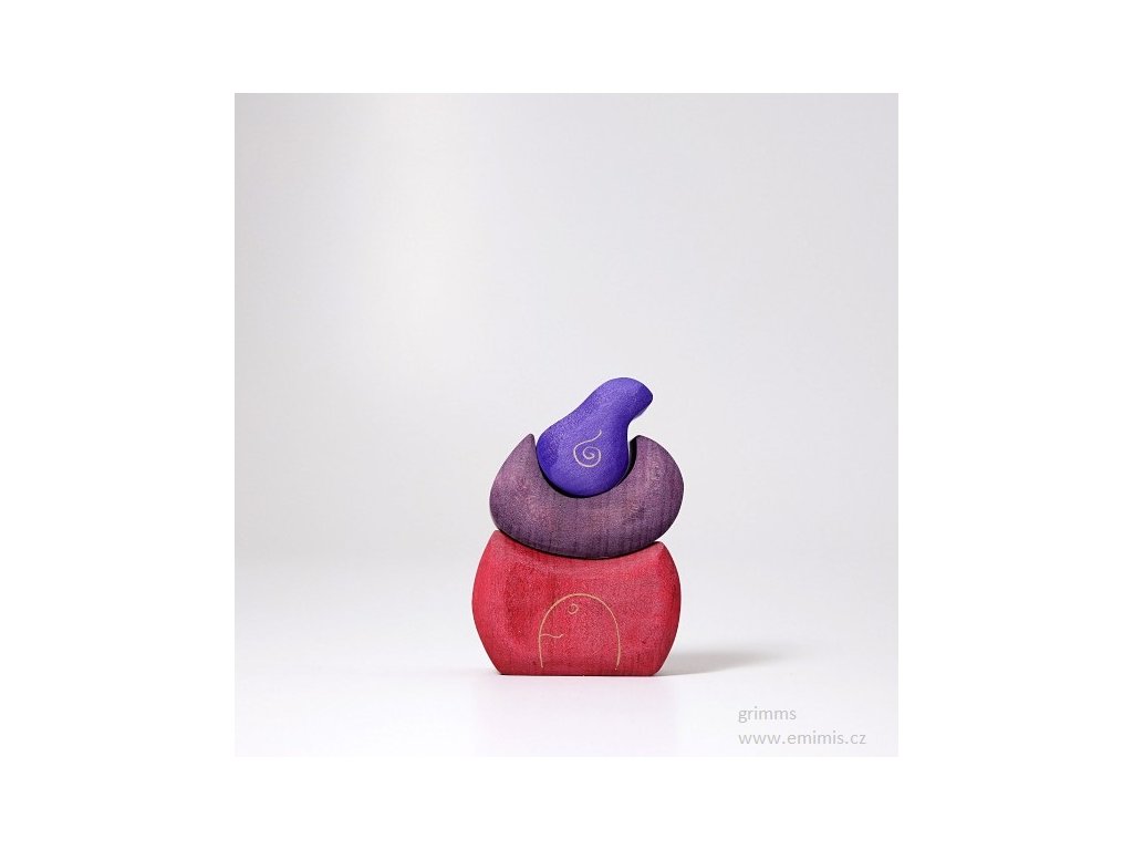 Malý domeček, pekárna pro trpaslíky, se skládá ze tří dílků v barvách červená a fialová. Trpasličí domeček je ručně malovaný a děti ho zpočátku sestavují, balancují dílky do výšky a později začleňují dřevěné kostky do svých staveb. Kostečky mají nepravidelné tvary, které mohou svými prstíky objevovat již nejmenší děti. Netradiční tvary kostek dodávají pozdějším stavbám zcela jedinečný a fantazijní charakter. Tento domeček je součástí setu trpasličí vesnička. Vhodné pro děti od 0 let.