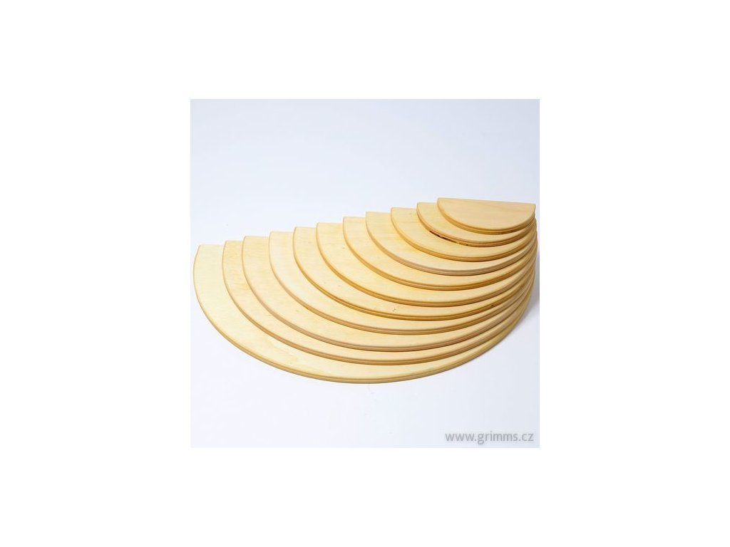 Krásná sada extra velkých půlkruhův přírodním provedení. Z dřevěných dílů děti mohou skládat originální obrazce, vytvářet prostory pro různé úkoly nebo společně s velkou duhou vystavět originální domečky pro panenky. Budoucím architektům se otevírá celý kreativní svět. Set obsahuje 11 dílů. Vyrobeno z překližky. Délka nejširšího dílu je 38 cm.