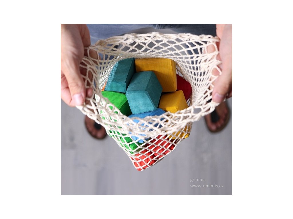 Velké waldorfské kostky jsou nepravidelné kostky, barevné, bez kůry a všechny mají opracované hrany. Tyto fantazijní kostky díky svým nepravidelným a překvapujícím tvarům nabízí dětem obrovský prostor pro jejich fantazii a stavění bez hranic. Kostky dodáváme v síťové kabelce. Vhodné pro děti od 0 let.